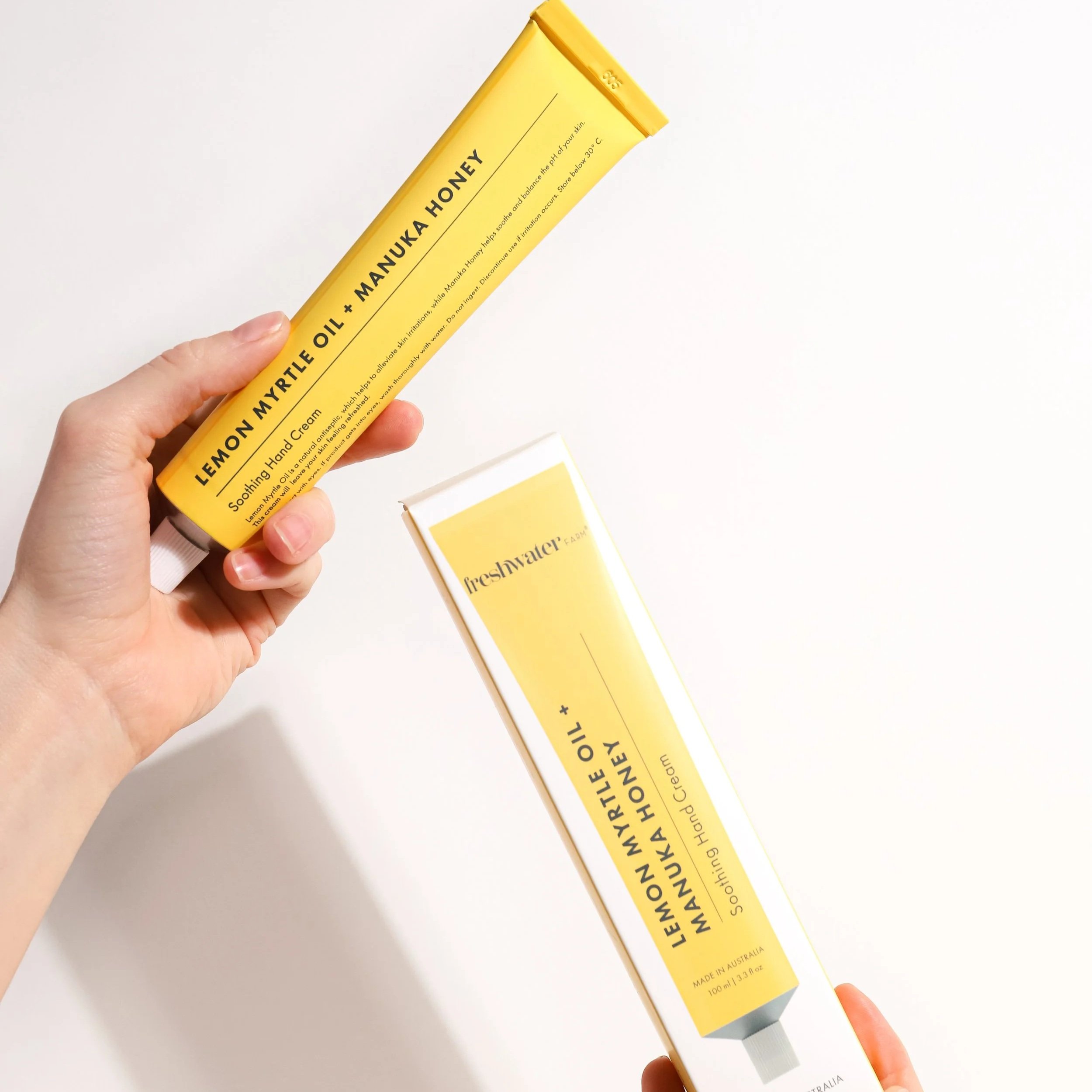 Our naturally derived hand cream formula is rich in nourishing shea butter and moisturising almond oil with cuticle-loving soybean oil to leave your hands hydrated and restored in your favourite Freshwater Farm aromas. Packaged in a 100% recyclable aluminium tube.